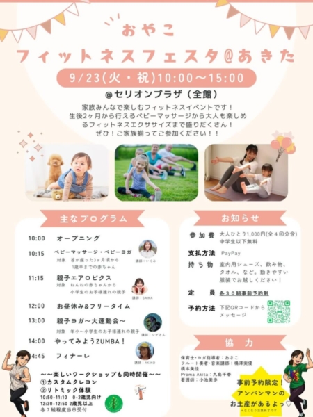 9/23(火・祝)おやこフィットネスフェスタ@あきた開催!