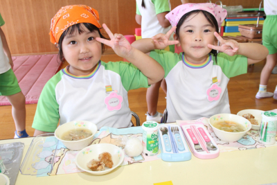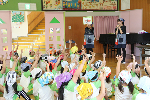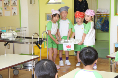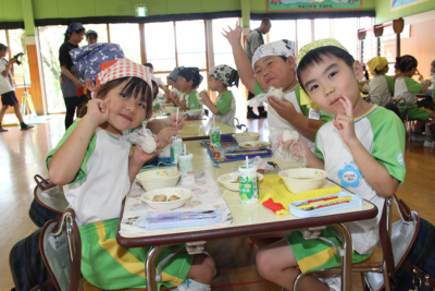 給食の準備をして待っていたみんなからお礼を言われると、嬉しそうに笑顔で答えていました。
