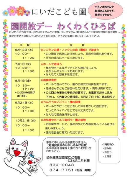 にいだこども園では、未就園のお子さんと保護者の方を対象にした園開放を行なっています。園の雰囲気を実際に見て・感じていただけるチャンスです。ぜひご参加してみてくださいね♪