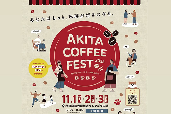 11月1日~3日までの3日間、『あきたコーヒーフェス2025』が秋田駅前大屋根通りで開催されます。