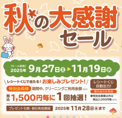 秋の大感謝セールとして、レシートくじが超豪華☆