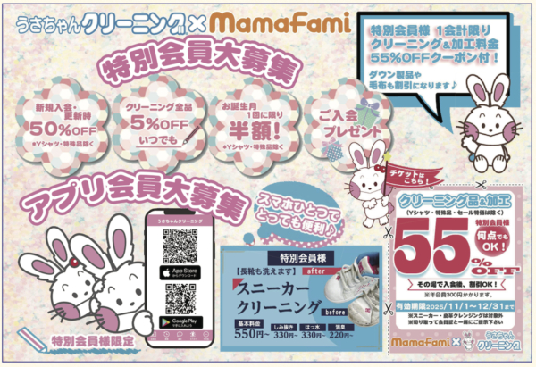 ○クリーニング&加工が55% OFF(11/1~12/31)