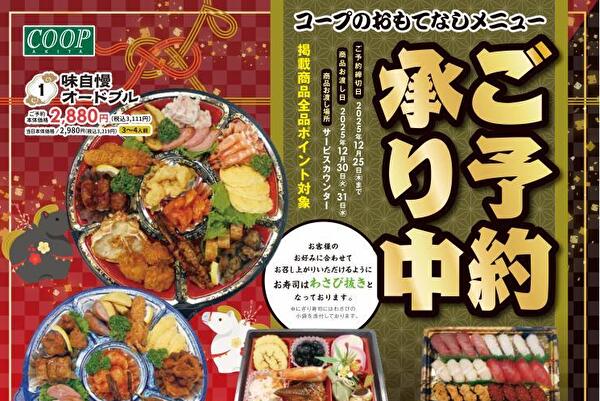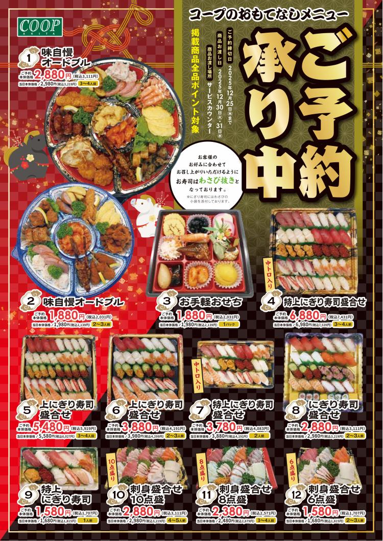 コープあきたでは、お正月の「おもてなしメニュー」の予約受付中ですよ♪
