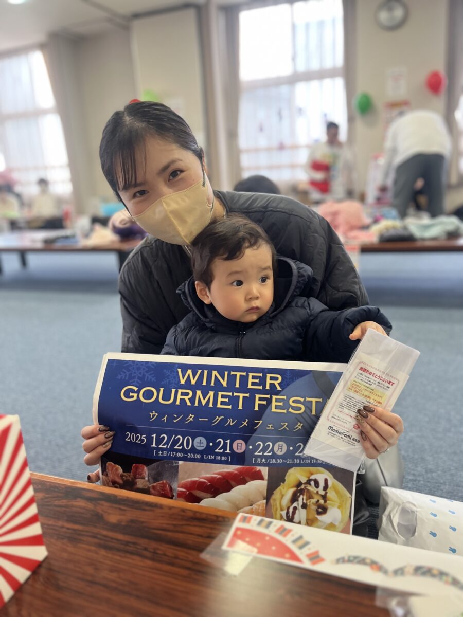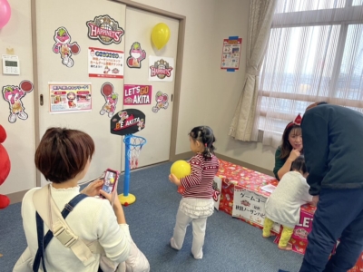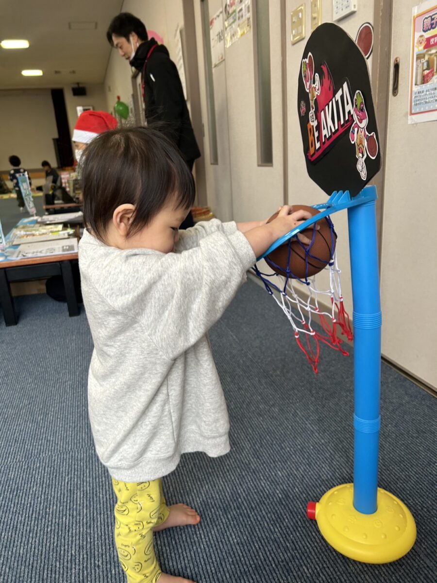 秋田ノーザンハピネッツさん協賛のゲームチャレンジ、お菓子すくい、くじびき、スタンプラリー、おさがりひろば、子育て応援企業ブース、じゃんけん大会、スマイリーさん協賛のおクリスマスフォトブースなど盛りだくさん♪