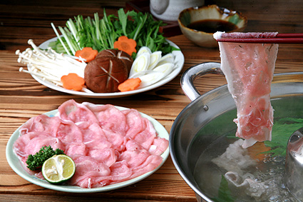 ほんのりピンク色の桃豚は柔らかく、臭みがなくて、しゃぶしゃぶ鍋にもぴったり♪