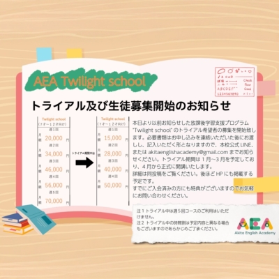 秋田で最高の英語教室を!!をコンセプトにした英語教室、Akita English Academy 。