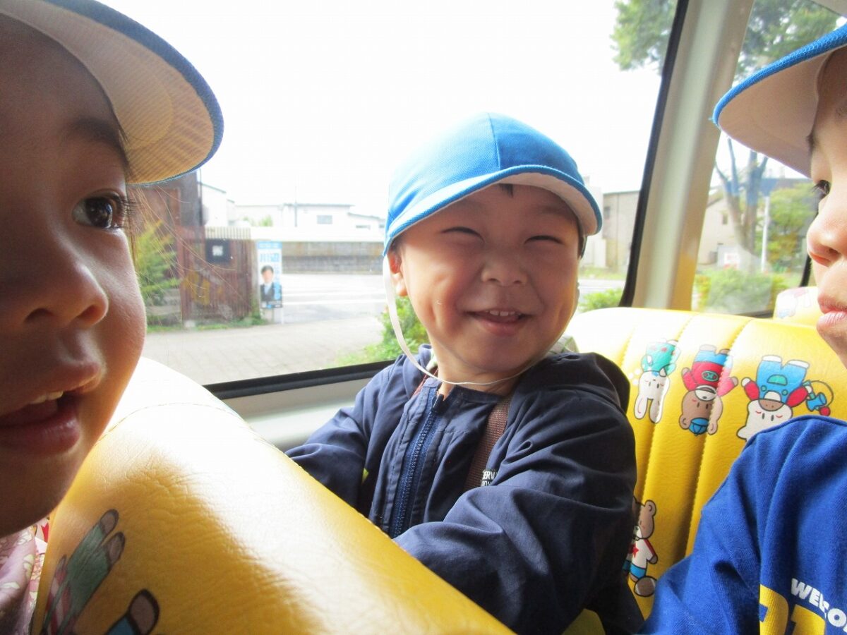 朝から大好きな園バスで登園です。