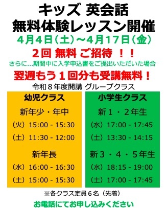 秋田市山王にある『英会話のBES』では、『春の体験レッスンキャンペーン』を開催します。
